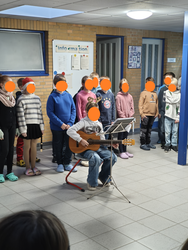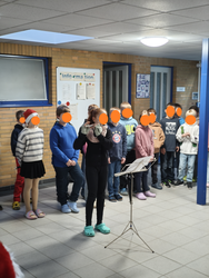 Doch nicht nur das gemeinsame Singen stand im Mittelpunkt – auch die Kinder wollten aktiv zur Adventszeit beitragen. Jede Klasse hatte für einen Montag etwas vorbereitet. Den Auftakt nach dem ersten Advent machte die vierte Klasse mit tollen musikalischen Einzeldarbietungen auf der Gitarre, mit Blockflöten und einer Querflöte sowie einem gemeinsamen Liedbeitrag. Nach dem zweiten Advent begeisterte die zweite Klasse mit dem Theaterstück „Der eilige Weihnachtsmann“. Nach dem dritten Advent präsentierte die dritte Klasse ein stimmungsvolles Lied und sorgte damit erneut für eine fröhliche Atmosphäre. So starteten wir jede Woche gut gelaunt und voller Vorfreude in die Adventszeit.