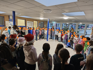 Auch unsere Adventszeit sollte für die Kinder etwas ganz Besonderes werden. Deshalb traf sich jeden Montag nach dem Adventssonntag die gesamte Schule im Foyer, um gemeinsam die passenden Strophen des Liedes „Wir sagen euch an den lieben Advent“ zu singen. Diese gemeinsamen Momente sorgten für einen besinnlichen und schönen Start in die Woche.