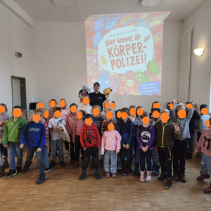 Am 21.11.2025 durften unsere erste und zweite Klasse an einer besonderen interaktiven Lesung teilnehmen: „Achtung, hier kommt die Körperpolizei!“. Die Autorin und Ärztin Dr. Sibylle Mottl-Link nahm die Kinder gemeinsam mit ihren liebevoll gestalteten Handpuppen – allen voran der Fresszelle Phagi – mit auf eine faszinierende Reise durch den menschlichen Körper.